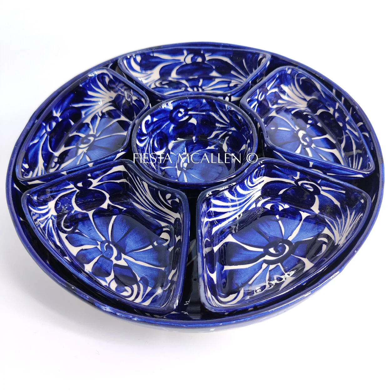 Hand made and painted in Mexico. Ceramic containers and large plate for use individually or as a set.
